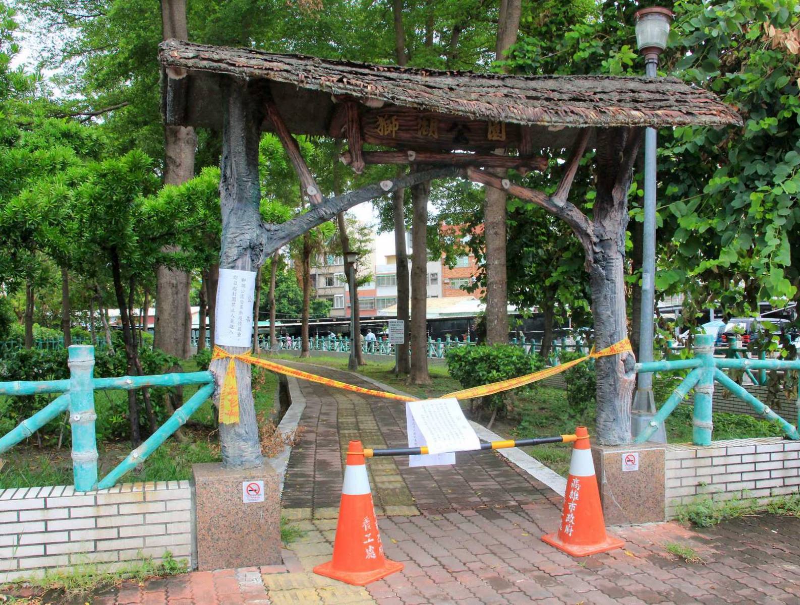 截至8月23日為止,高雄市累計341起本土登革熱確診案例,其中,獅湖公園週邊37起案例中,近4成有公園活動史,園內成蚊數量偏高且樹洞有積水情形,高雄市政府宣布封閉獅湖公園,並設置告示牌、禁止出入,至少封園兩週,全面進行緊急防治工作,24日上午副市長陳金德也前往關心疫情,盼與市民攜手防疫。
