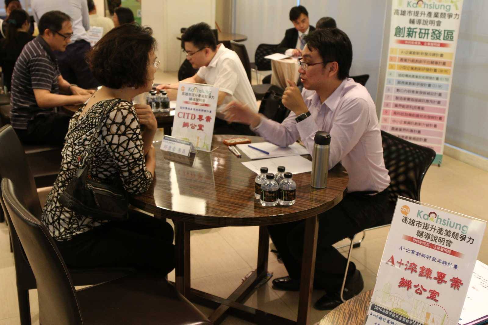 ↑活動現場邀請A+企業創新研發淬鍊計畫、CITD協助傳統產業技術開發計畫、SBIR經濟部小型企業創新研發計畫、SIIR服務業創新研發計畫等計畫辦公室代表與資策會計畫申請義診團提供企業現場諮詢申請補助計畫。