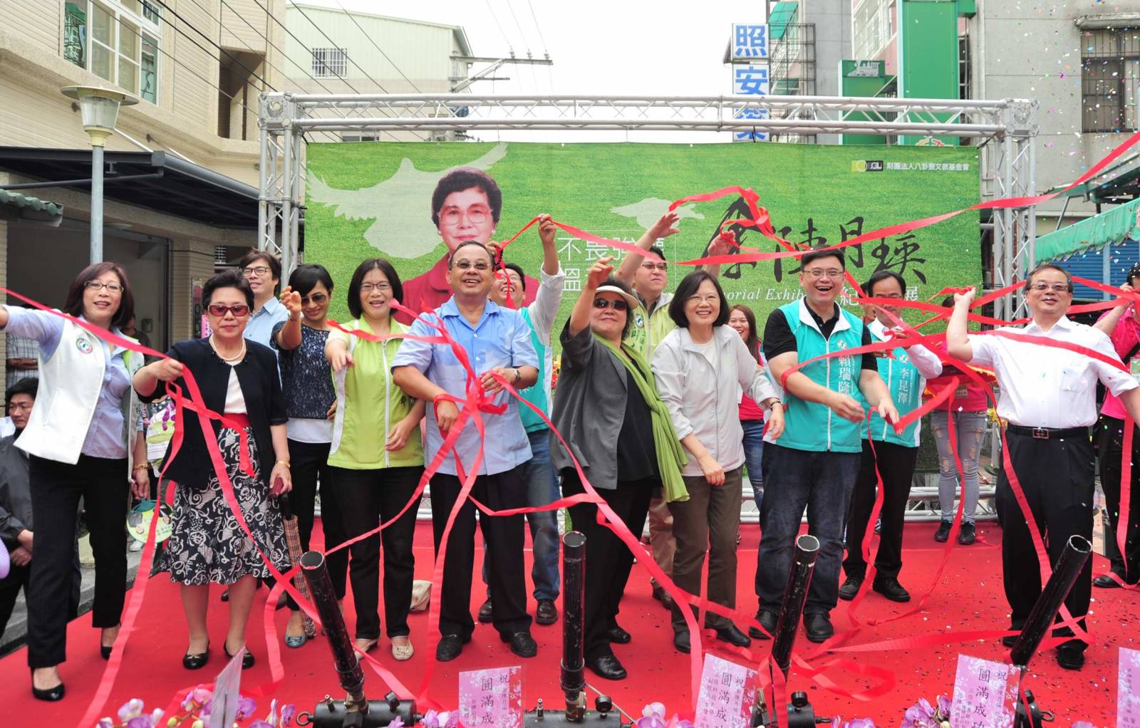 民進黨黨主席蔡英文應八卦寮基金會董事長余政憲邀請,特地南下和高雄市市長陳菊、民進黨前主席許信良及星雲法師一同參與開展揭幕活動,活動中也邀請了臺語金曲歌后詹雅雯,帶來具有台灣民主時代背景的代表性歌曲,藉由歌聲演繹,唱出屬於台灣女性溫柔且堅毅之精神,並感念余陳月瑛對於台灣民主的奉獻。在儀式中,來賓投出飛越的彩球為本展熱鬧揭幕,這象徵為各行各業的卓越女性喝采,而投擲出去的彩帶更象徵,台灣人民對於民主理念一代傳一代開枝散葉守護臺灣迎向未來。