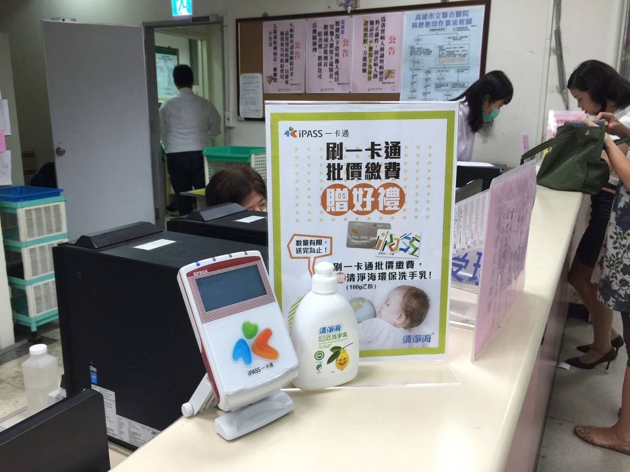 高雄市立民生醫院、凱旋醫院、聯合醫院自今年四月起開放使用一卡通批價繳費,日前又新增一所高雄市立中醫醫院亦可使用一卡通批價繳費。使用電子票證批價繳費,可縮短批價現金付費找零時間,並降低攜帶現金的風險。為鼓勵民眾民眾多加利用,一卡通公司推出特別活動,只要於四家市立醫院使用一卡通批價繳費,不限金額即可獲贈清淨海環保洗手乳一份。