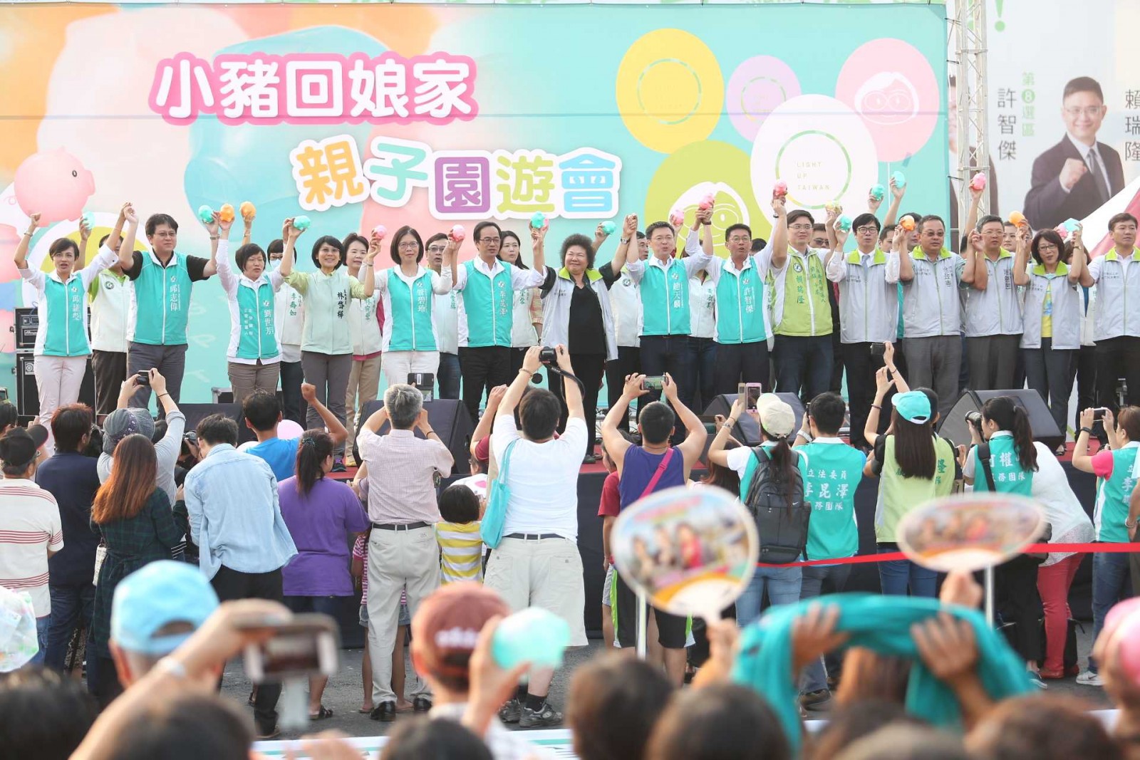 活動於今天下午3點在蔡英文高雄競選總部凹仔底公園舉辦,現場除了粉綠、粉紅、粉橘三色胖卡一起亮相外,同時安排小豬相關活動,包括小豬回娘家、發送限量存錢小豬撲滿、小英商號行動攤位及歌手演唱。其中,小英商號的商品熱賣,現場擠滿選購的支持者。