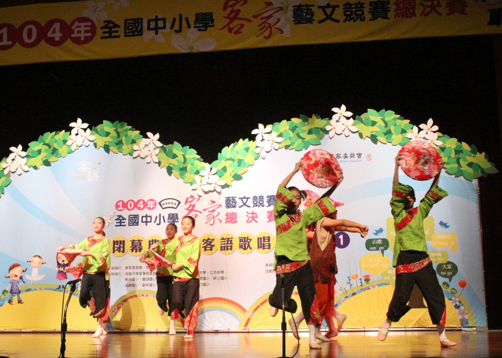 「104年全國中小學客家藝文競賽」總決賽由高雄市莊敬國小承辦,於今天(14日)上午9時在正修科技大學校園熱鬧登場,120隊來自全國優秀的參賽隊伍,經由北區、中區、南區、東區激烈初賽後脫穎而出;全國中小學客家藝文競賽肩負傳承客語文化,區分幼兒、國小與國中組,分為「客語歌唱表演類」、「客語口說藝術類」、「客語戲劇類」三組,共計產生9組冠軍。