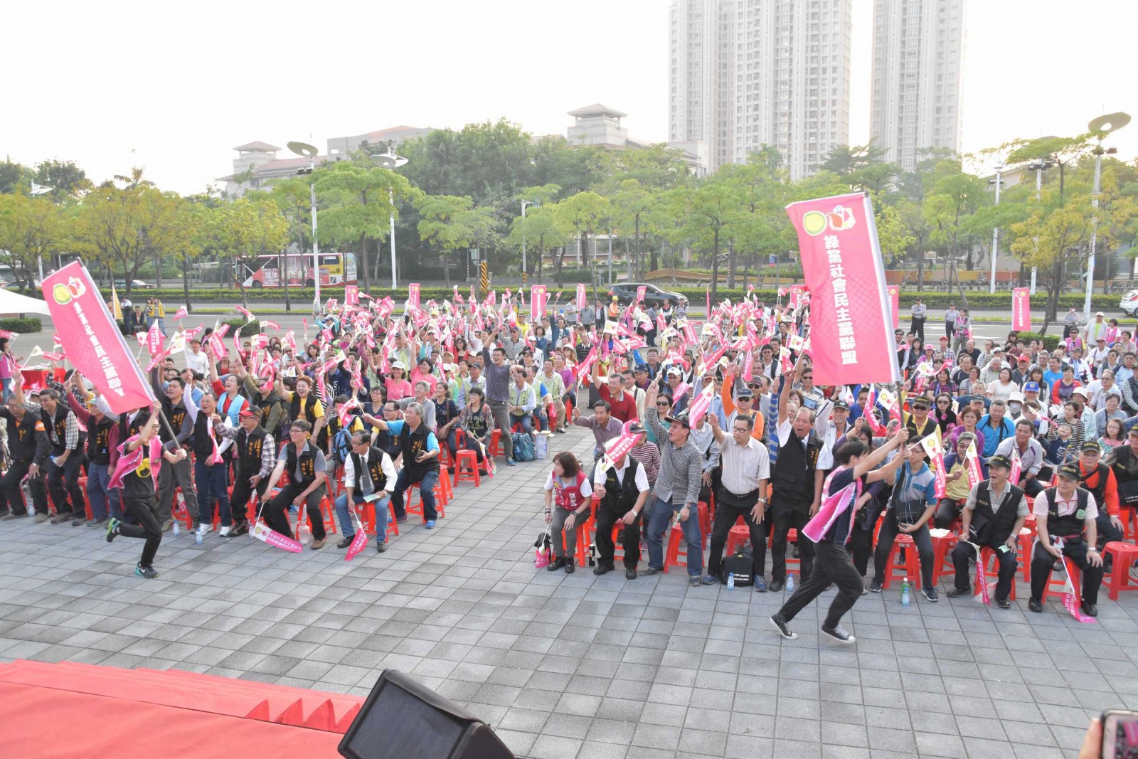 11月28日下午,綠黨社會民主黨聯盟在高雄勞工公園舉辦工人鬥陣團結大會。來自全國各地的金融、電信、教師、鋼鐵、石化、高等教育、彩券業等產業工會領袖齊聚港都,力挺唯一將勞工代表列為政黨不分區首位的綠社盟。綠社盟勞工不分區立委候選人、投入工運20年的張麗芬表示,過去幾個月積極拜會勞工組織,綠社盟迄今已獲得超過三十個全國性工會以及縣市級總工會的支持。