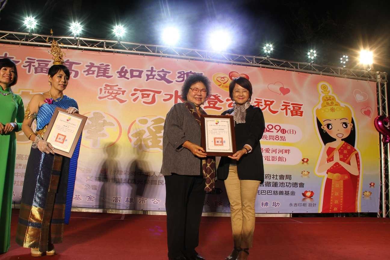 為關懷新移民及促進多元文化交流,「泰幸福:幸福高雄如故鄉.愛河水燈頌祝福」水燈祈福及許願活動11/29於愛河河畔舉行,邀請新移民家庭及民眾共襄盛舉,市長陳菊與市民朋友一同靜心祈禱高雄幸福平安,並施放水燈。