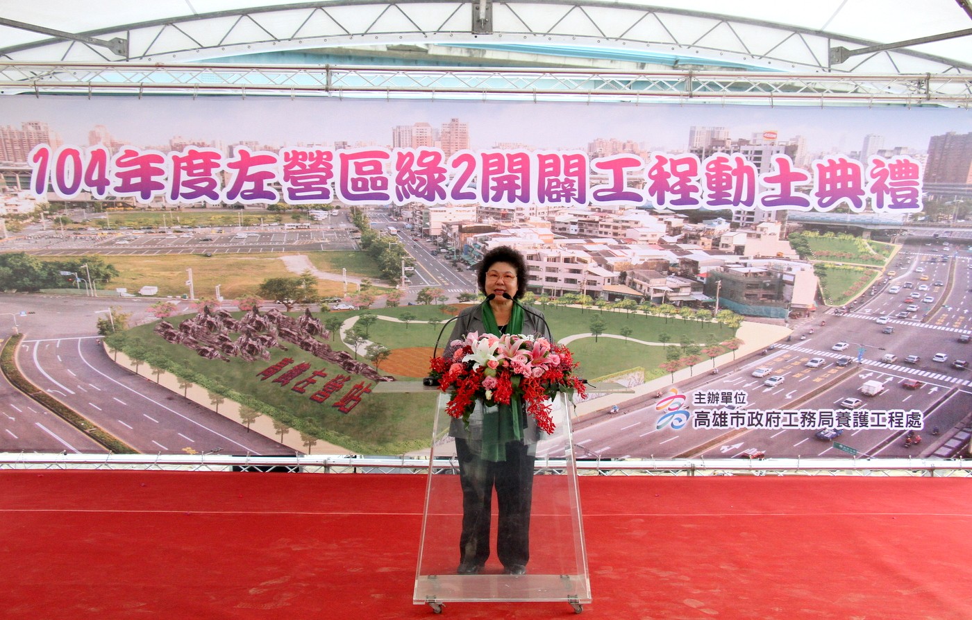 左營區綠2用地位於翠華路、菜公路及站前南路旁,鄰近半屏山南側,但因過去此地缺乏整體規劃,景觀雜亂。為改善市容,市府投入1.6餘億元建闢綠地空間,今日下午由市長陳菊主持動土典禮、祈福動鏟,祈求工程如期如質完工。