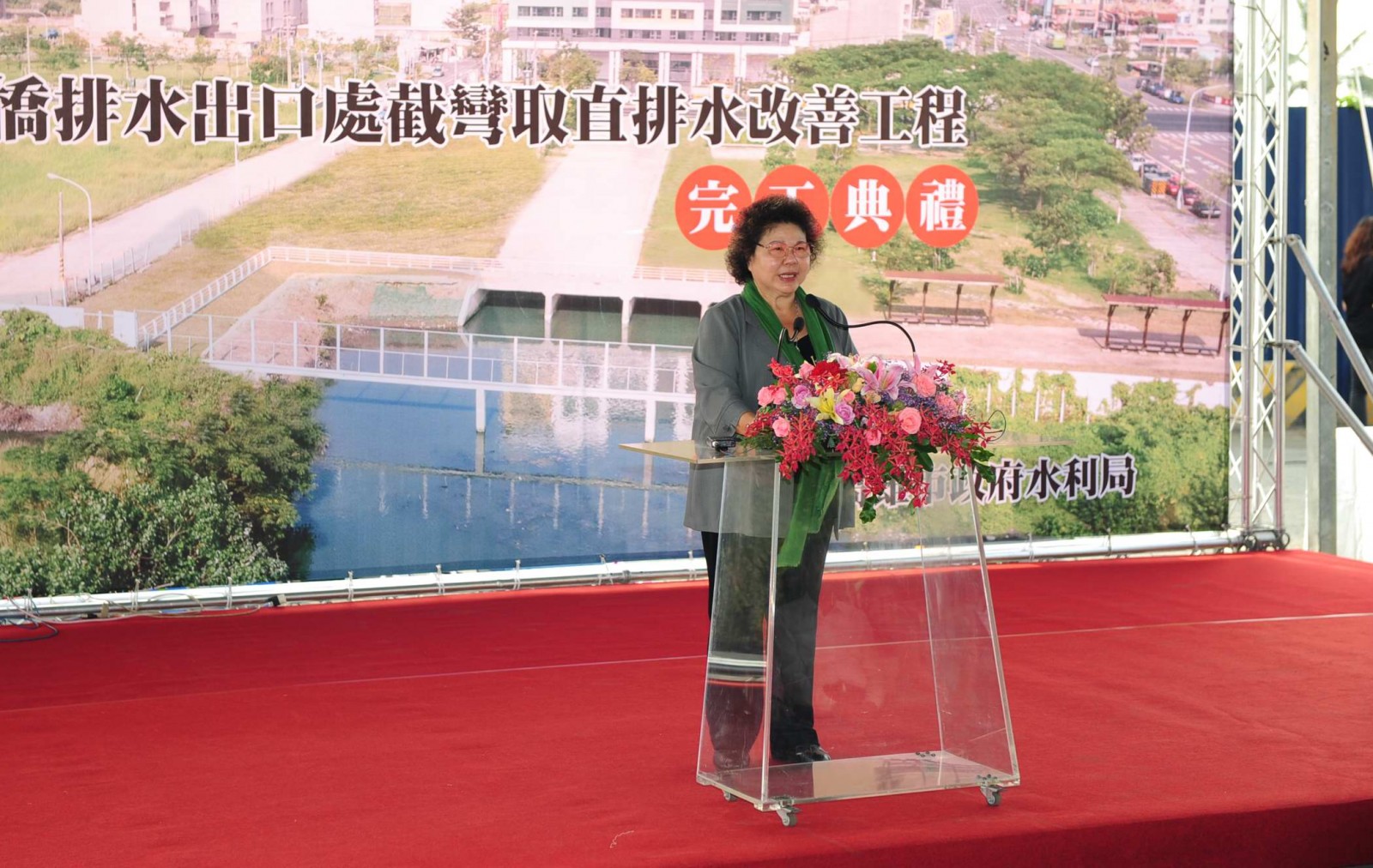 陳菊表示,市府投入總經費近1億元,具體辦理左楠地區治水防汛工程,包括陸續完成右昌抽水站工程、高雄大學地區箱涵與排水側溝興建工程、楠梓後勁溪興中制水閘門簡易通行便橋等工程,目前執行藍昌路雨水箱涵改建工程及明年右昌元帥廟附近排水工程,希望提升左楠地區河防安全及排水效能,徹底解決水患之苦。