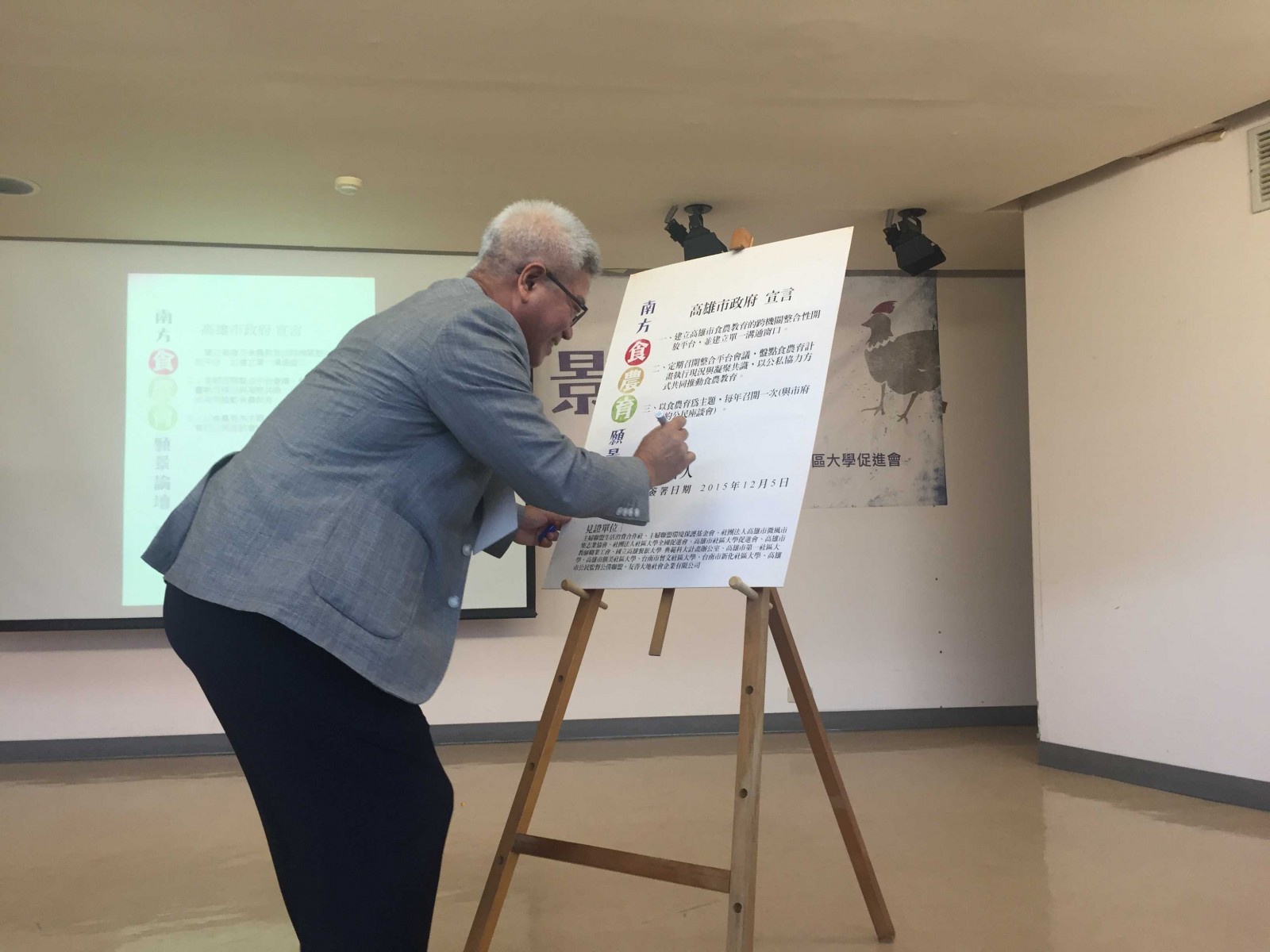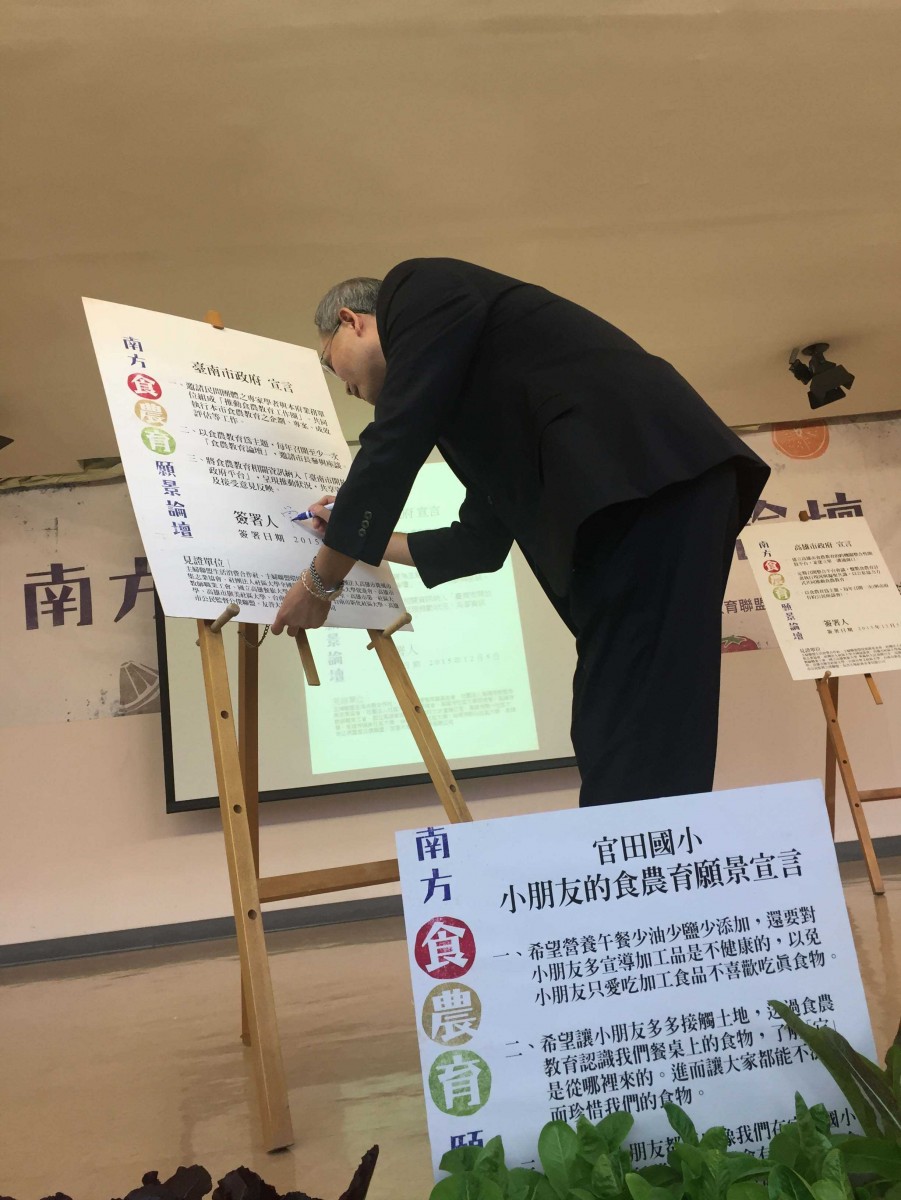 現場邀請台南市、高雄市府市副市長簽屬兩縣市對於食農育的願景宣言,兩縣市宣言如下: