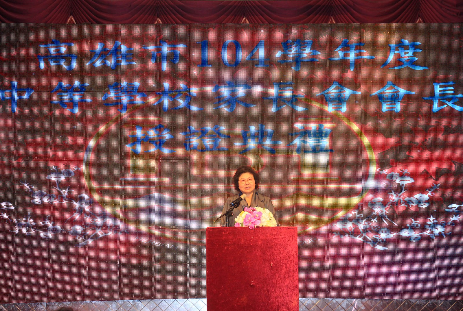 高雄市長陳菊今(12/7)日出席104學年度中等學校家長會長授證典禮,頒發當選證書予85位家長會長,她也感謝家長會長、團體及校長長期以來對於教育的耕耘和奉獻,期許大家繼續攜手為孩子的將來努力,一同成為教育的推手,讓下一代持續茁壯、多元發展。