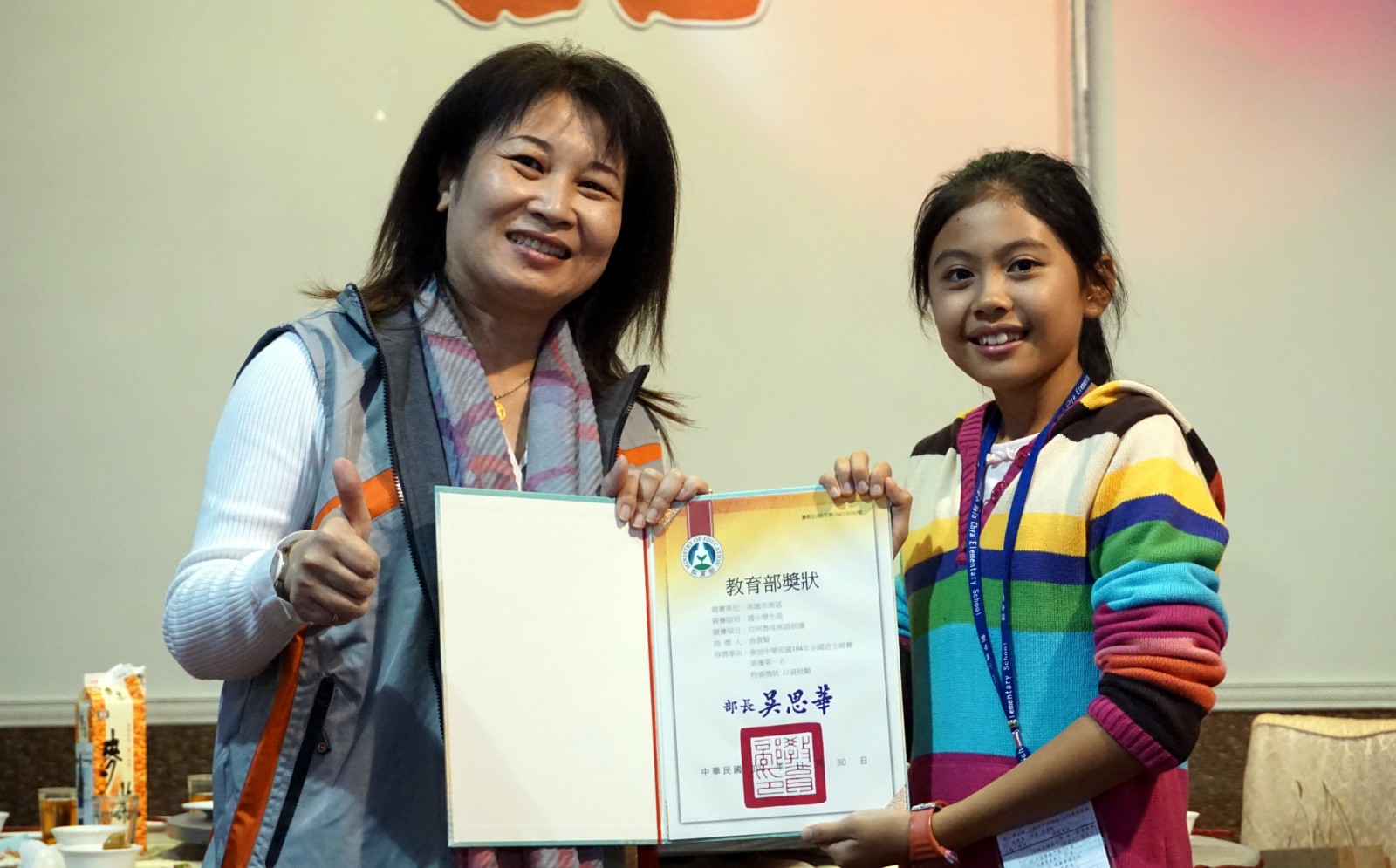 104學年度全國語文競賽決賽成績出爐,高雄市表現傑出,總計勇奪11金、10銀、5銅,其中原住民族語表現更為亮眼,全國16個原住民族語競賽,高雄市就囊括8面金牌;為了想讓更多人聽到家鄉語言之美,曾經說族語感到害羞的九如國小游書賢、國中前完全不懂原民語的岡山高中白珮欣,靠著上網學習與不放棄學自己族語的精神,今年分別奪下全國「拉阿魯哇族語」、「邵族語」朗讀第1名。