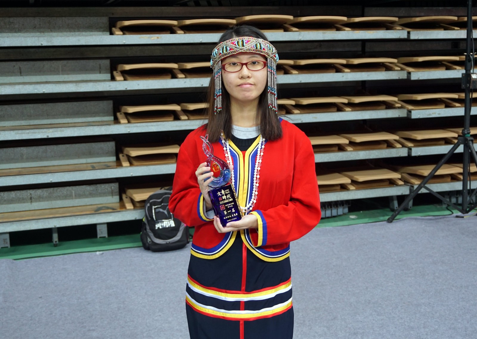 從小就不會說自己的族語,岡山高中白珮欣偶然間發現「邵族」語言很美,但是因家裡沒人會說,族人也都住在南投,白珮欣經由網路自行學習,國中2年級時,她才從一個個的單字慢慢學起;靠著不斷的唸與讀,白珮欣從中發現邵族的傳說與文化,她以不放棄學自己族語的精神,在賽前勤練,第1次參賽,就擊敗來自邵族原鄉好手,讓她今年奪下全國「邵族語」朗讀第1名。