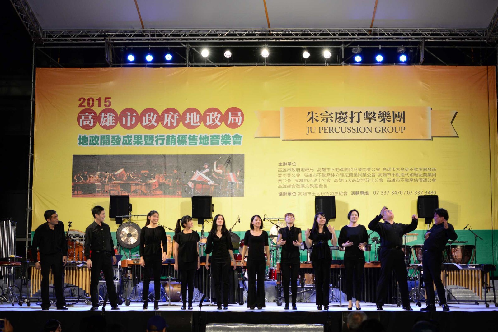 高雄市政府地政局舉辦的「2015地政開發成果暨行銷標售地音樂會」12月19日晚上在三民區國立科學工藝博物館北館西側平等大道廣場熱鬧登場,主辦單位再度邀請了享譽海內、外的朱宗慶打擊樂團,進行戶外公開演出,其獨特的展演風格,吸引數千民眾熱情參與,共享這場新奇豐富的音樂盛會。