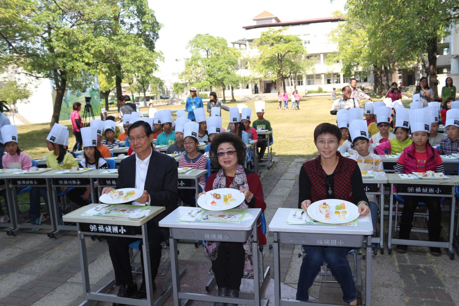 高雄市教育局為建立學生正確的飲食習慣,帶動學校飲食教育,於今天(104年12月30日)上午在福誠國小舉辦「味覺教育-甜味三部曲」的體驗課程,由米其林大廚沈峰誼指導小朋友,以3種甜度不同的天然食材,做出「美味」的好料理;頭一遭在校園草地上品嚐美食,學生們都難掩興奮。
