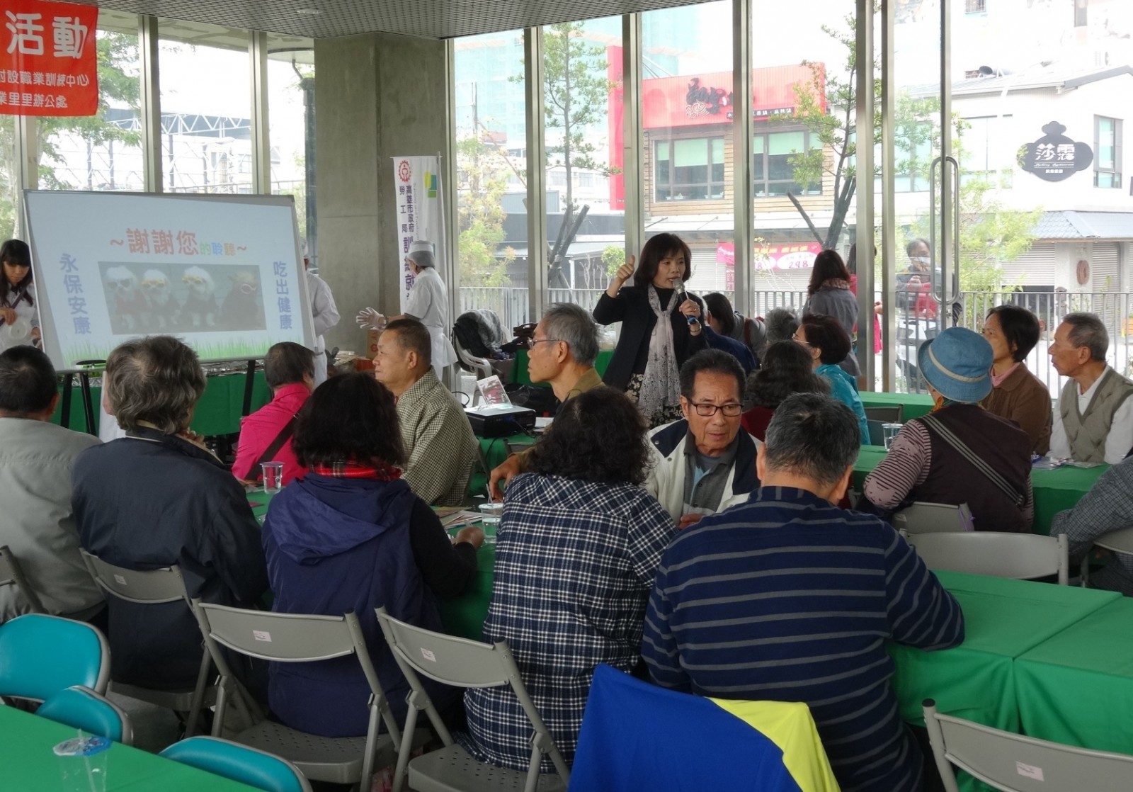 農曆年節即將到來,高雄市政府勞工局訓練就業中心委託高雄中餐服務人員職業工會開辦的餐飲職訓班,今(19)日上午在「三民區寶業里滯洪池公園活動中心」舉辦愛心圍爐活動,除邀請輔英科技大學營養師蕭華岑主講「飲食與營養」,也邀請鄰近社區民眾、長輩享用學員精心準備的團圓飯,提前歡度春節。