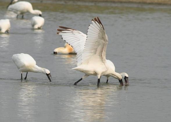 隨著氣候漸冷,被國際保育自然聯盟評定為瀕臨絕種的黑面琵鷺,已漸漸群聚於茄萣濕地,目前濕地內觀察到最大量約121隻,在濕地內也可以觀察到青足鷸、濱鷸、東方環頸鴴、高蹺鴴等鷸鴴科鳥類在淺水灘地活動、黑面琵鷺在水面左右撈食、大白鷺、小白鷺或高或低休憩覓食;此外,還有洲仔濕地的紅尾伯勞、蒼鷺、黃尾鴝、白腹鶇、虎鶇;援中港濕地的棕背伯勞、極北柳鶯、鳳頭潛鴨、青足鷸、白冠水雞;鳥松濕地的白鶺鴒、中白鷺、赤腹鶇等候鳥,都吸引了不少愛鳥人士的駐足拍攝。