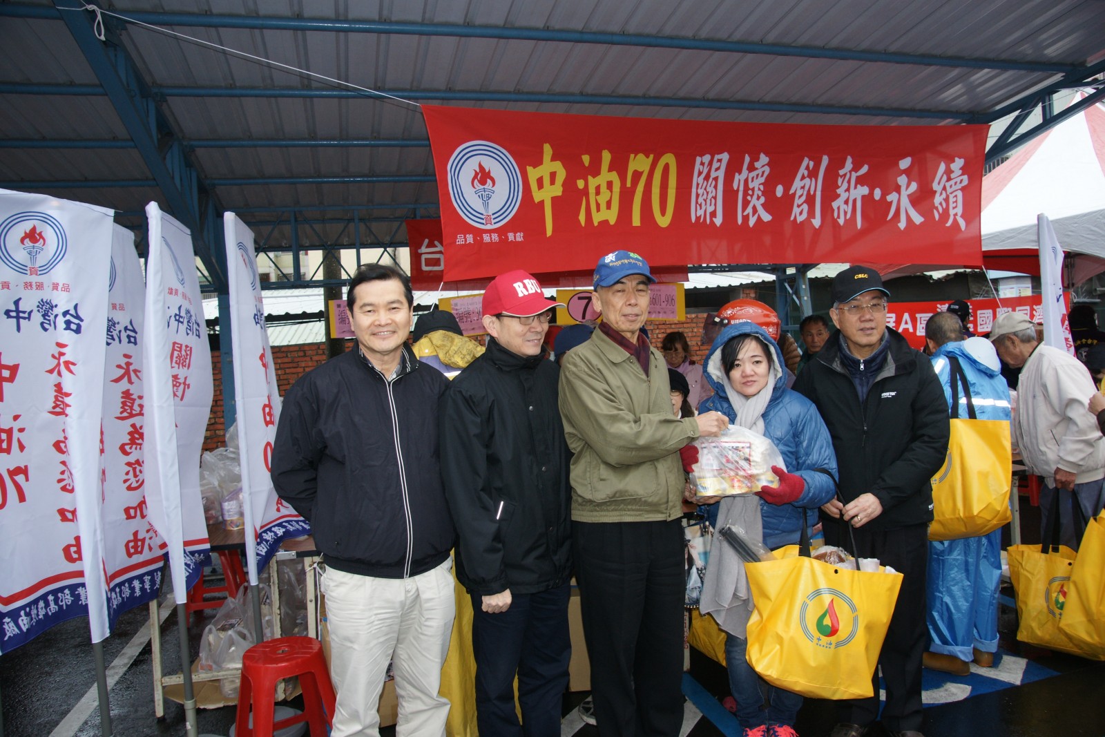 1月24日強烈寒流襲台寒風刺骨,在大寮區公所廣場,台灣中油煉製事業部提供民生必需品,贈送弱勢家庭,執行長李順欽不畏風寒率高雄煉油廠廠長許如凱、行政室主任李建清、工關組梁經理及多位同仁到現場,直接發送民生物質(鯖魚罐頭組、沙茶紅燒鰻、青葉土豆麵筋、極品大寬麵)860份,給予大寮區的低收入民眾,並致關懷慰問之意。