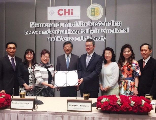 此次簽約儀式由文藻外語大學校長周守民及CHi執行長Thirayuth Chirathivat共同簽署,駐泰國台北經濟文化辦事處謝武樵大使及政治組藍夏禮組長亦獲邀觀禮,對此跨國產學合作,謝大使表達十分欣慰,亦鼓勵更深入長期的交流。泰國中央集團旗下擁有飯店、渡假村、百貨公司、餐廳、精品店、芳療事業、會議中心等,在全泰國即有46家連鎖飯店與渡假村;在越南、印尼、馬爾地夫、斯里蘭卡等東南亞及印度洋區,擁有21家度假村;曼谷最知名的百貨公司Central World 即屬於該集團所有。