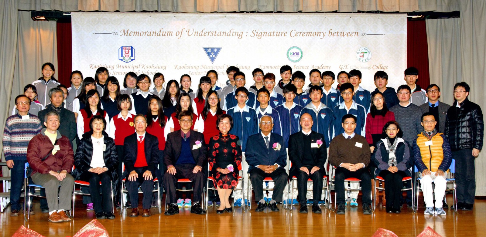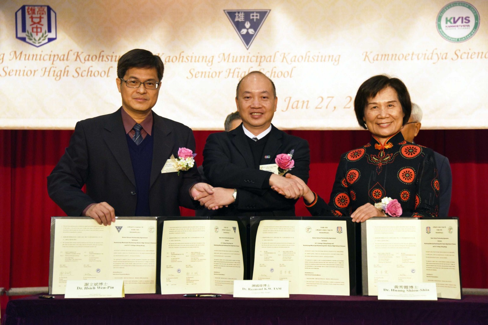 簽署儀式由高雄女中校長黃秀霞、高雄中學校長謝文斌和香港優才書院校長譚國偉一起簽署,香港優才書院創辦人李業富教授出席見證。