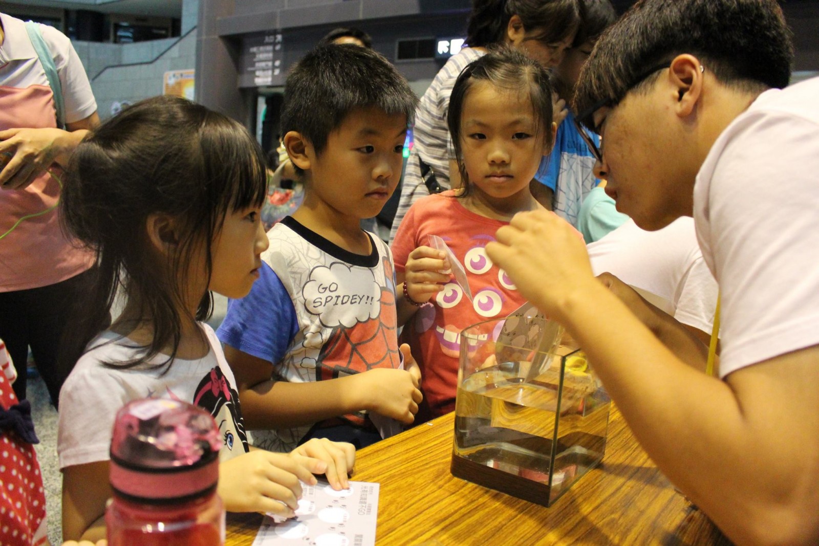 國立中山大學SPIE學生分會強調,有別於一般的演示,這次和科工館的合作活動採取現場實做的方式,讓小朋友動手操作並且觀察光學現象,活動內容包括「全反射實驗」,把小朋友畫的圖案放進袋子裡再泡進水中,光線經過兩種不同介質並且符合全反射角,圖案就不見了!「戴上紅藍眼鏡」則是利用人眼視差,讓特殊的平面圖案變成立體的。