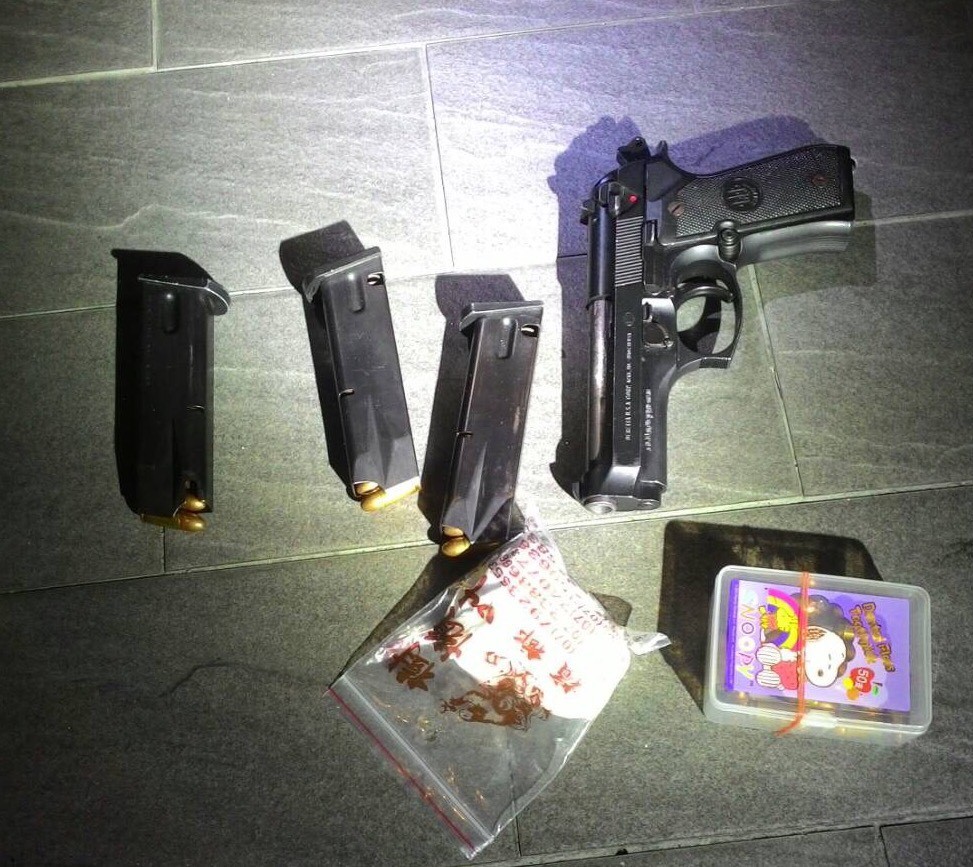 高雄前鎮一處海產店日前因敬酒細故,發生擦槍走火,不僅洪姓老闆中彈,隨後兩派動員20輛車在楠梓街頭爆發槍戰,在逃潘姓主嫌與吳姓同夥躲藏多時,1/26在落腳的旅店被警方攻堅逮捕,起獲手槍1把、子彈61發。