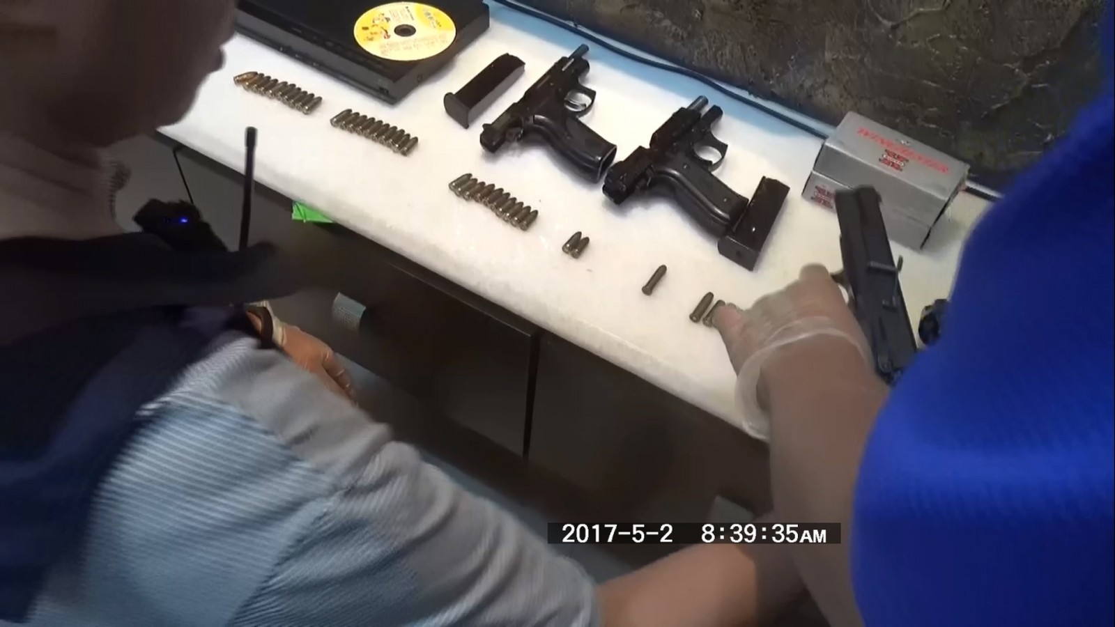 33歲孫男綽號「勳仔」,平日在苓雅區經營洋酒行,警方接獲線報,指他最近接連在夜店喝酒後亮槍嗆聲,經多次埋伏跟監,鎖定他的行蹤,於本月2日兵分2路,在他鳥松住處及苓雅區所開的洋酒行同步執行搜索。