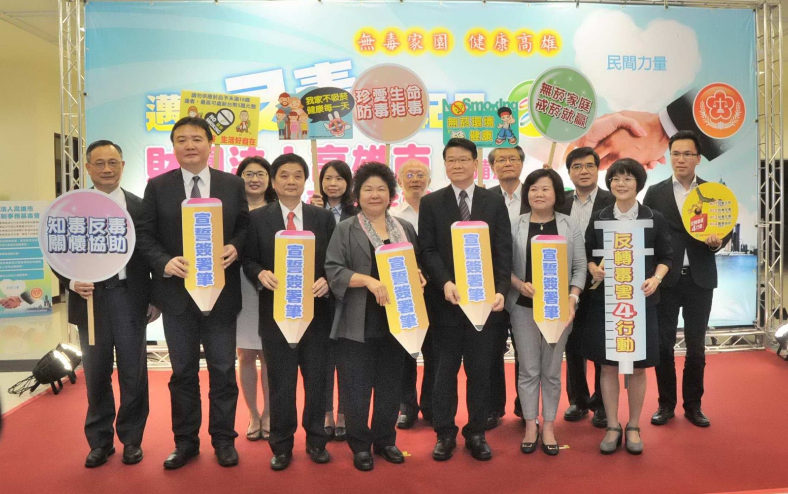 鑑於毒品防制工作之重要與迫切性,高雄市今年4月宣布成立「財團法人高雄市毒品防制事務基金會」,除4/12籌備處揭牌、第1屆第1次董事會也於4/24召開,17名董事包括高雄巿長陳菊、雄檢檢察長周章欽、橋檢檢察長王俊力、副巿長許立明、許銘春、高巿府副秘書長及蔡柏英、衛生局長黃志中、警察局長陳家欽、社會局長姚雨靜,勞工局長鄭素玲、教育局長范巽綠、華友聯集團總裁陸紀康、高雄市榮譽觀護人協進會理事長劉瑞卿、高雄縣醫師公會常務理事高維祥、高雄醫學大學教授李志恆、中正大學教授鄭瑞隆、沐恩之家執行長李國揚等。