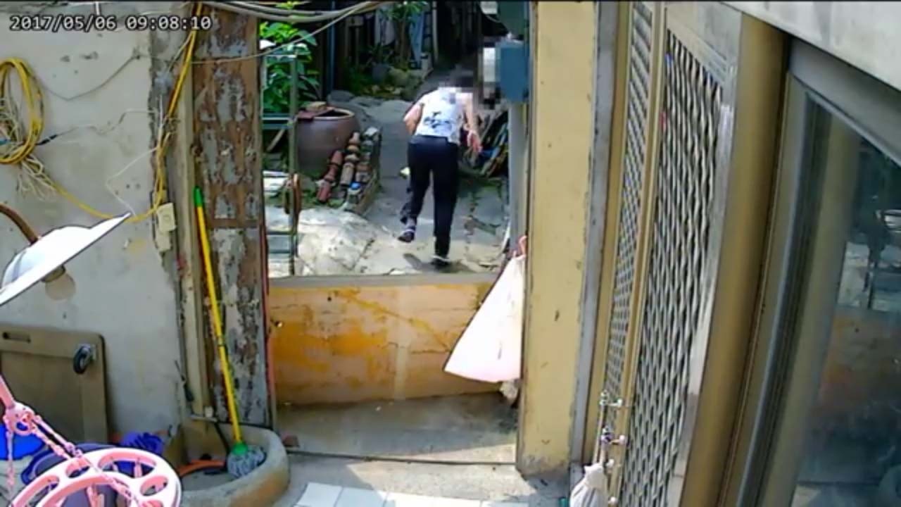 被竊的楊姓自助老闆6日上午9時許發現買菜錢30餘萬元以及要找零的銅板不翼而飛報警,鹽埕警分局建國四所獲報後調閱監視器,看見楊男行竊後,帶著一袋得手的現金離開,離去時還被絆倒,踉蹌後蹲在路邊撿錢。