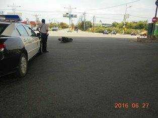 依道路交通事故調查,顏男開車在速限50公里道路上,時速約30公里,蔡婦本在他右側略前35至45度角位置,兩車以該角度接近,僅約2秒就碰撞,地面留下約7公尺的刮地痕,蔡婦是騎機車未兩段式左轉,直接擦撞到顏男。