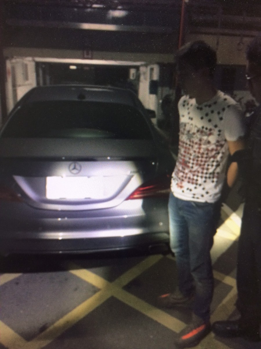 賓士車主21歲王男自知難逃法網,昨凌晨2時30分向前鎮警分局一心所投案,交由保大帶回偵辦後,王男聲稱從事殯葬業,被攔下時因在拉K,害怕被抓才逃走,警方隨後採尿送驗,暫依妨害公務及毀損罪送辦。