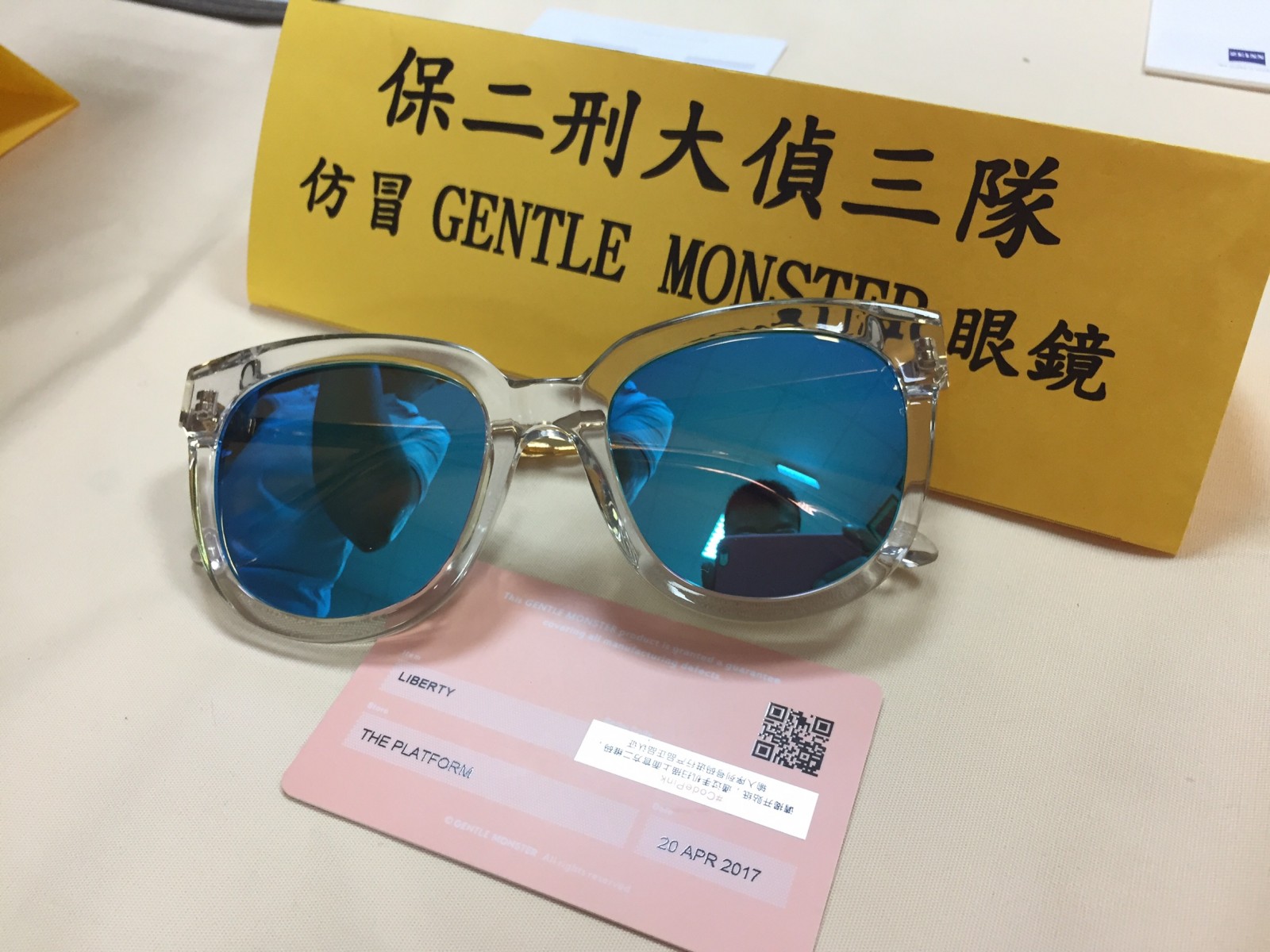 警方現場查扣各式精品眼鏡,經過鑑定後有部分是真品,另有仿品515件,侵權市值約新台幣500餘萬元,包括韓國品牌GENTLE MONSTER墨鏡,因韓劇《來自星星的你》女主角全智賢配戴多款而打開知名度,也在仿品的名單中。