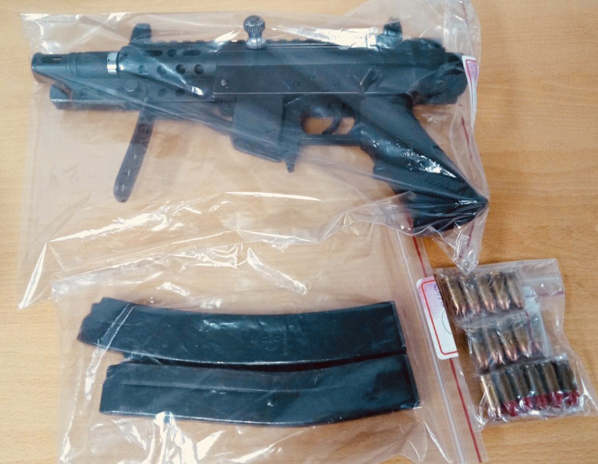 專案小組隨即在他住處執行搜索,查扣安非他命8包、重700公克,KG-9型衝鋒槍1支、空氣槍2支、9mm子彈16顆、彈匣2個、槍管1支、吸食器等,保險箱內還有疑似贓款219萬5000元等,劉男則辯稱錢都是他從事工藝所得。