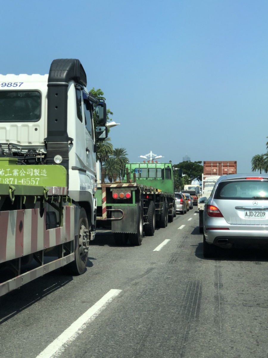 有經過小港中山路都覺得提心吊膽,砂石車 拖板車 連結車一堆~~