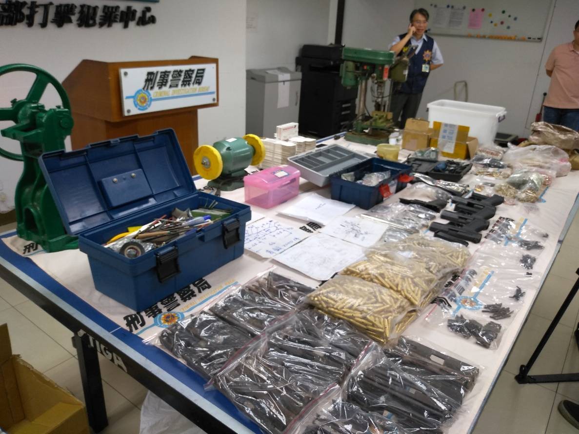 隨後在他3樓露台以及1樓雜物間,起獲P99改造手槍3把,逾800發的子彈成品、半成品及零組件與改造工具等,但他辯稱東西都是朋友寄放,警方則在同一時間,前往仁武環湖路,搜索涉嫌幫他代工改造槍枝的模具工廠。