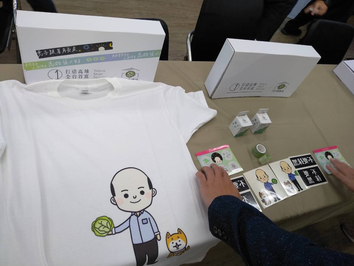 韓國瑜官網10/28上線,網址richkh.tw,符合他打造高雄全台首富的想法,下午3時開賣的賣菜郎小物,限量1萬組,每組1888元,裡頭有T恤、文創貼紙等,不到2小時被搶光,有台北人臉書留言,沒辦法投票給你,用鈔票支持你。