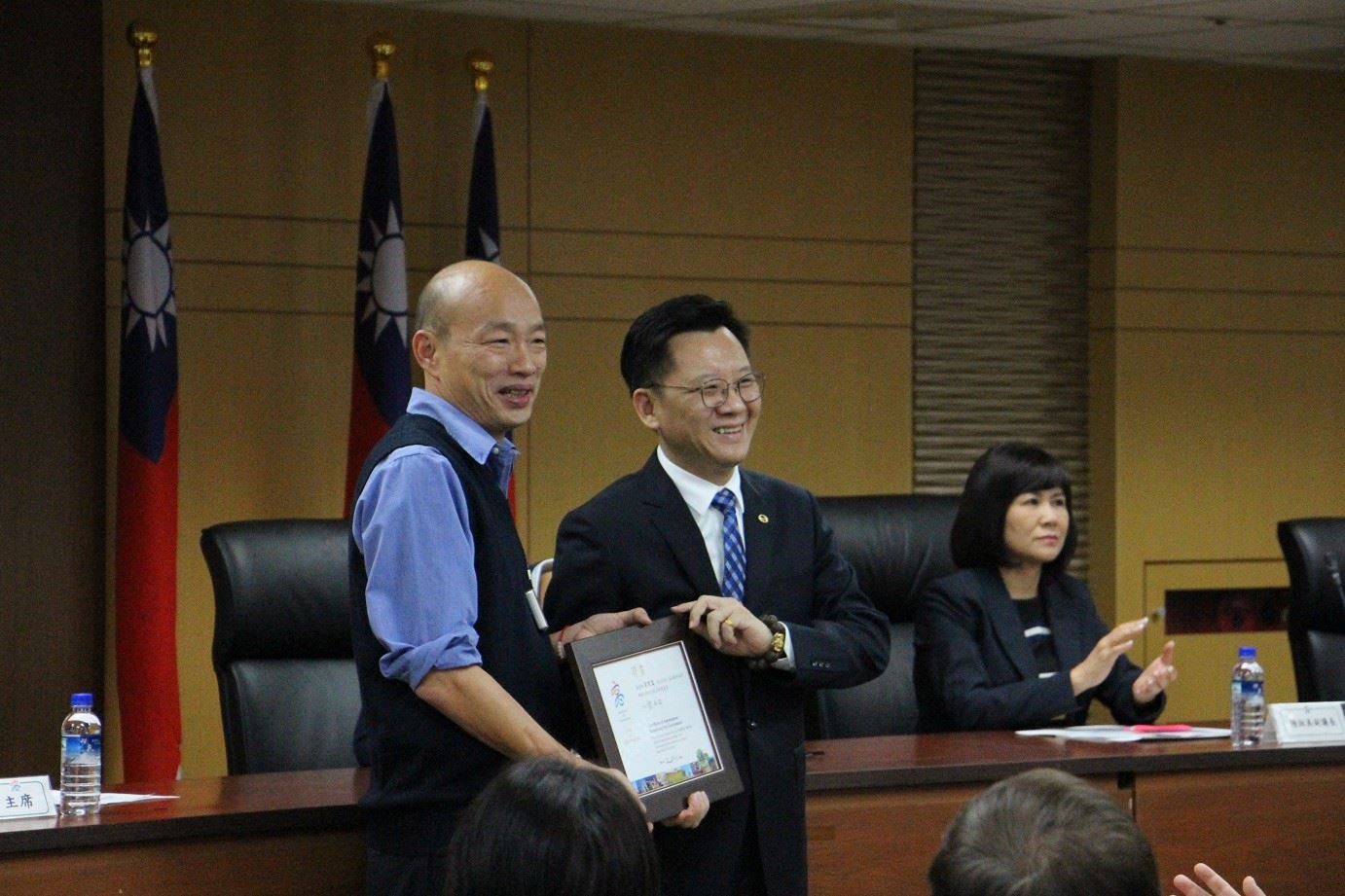 此外,韓國瑜也說,高雄東西要能夠賣出去,人要進得來,需要擴展經貿範圍,跟大陸、東南亞,甚至是全世界的人做好朋友,應保持開放的心胸,積極促成內外在的經商條件,才能將高雄優質的農漁產外銷,提升產值。另因應美中國際貿易情勢,也應把握台商回流契機,盼中央有關機關能提供相關協助,讓高雄提供更多產業用地供回流台商使用,並建請中央給予高雄支持,協助宣導有關台商回流政策,引領台商回流投資高雄。