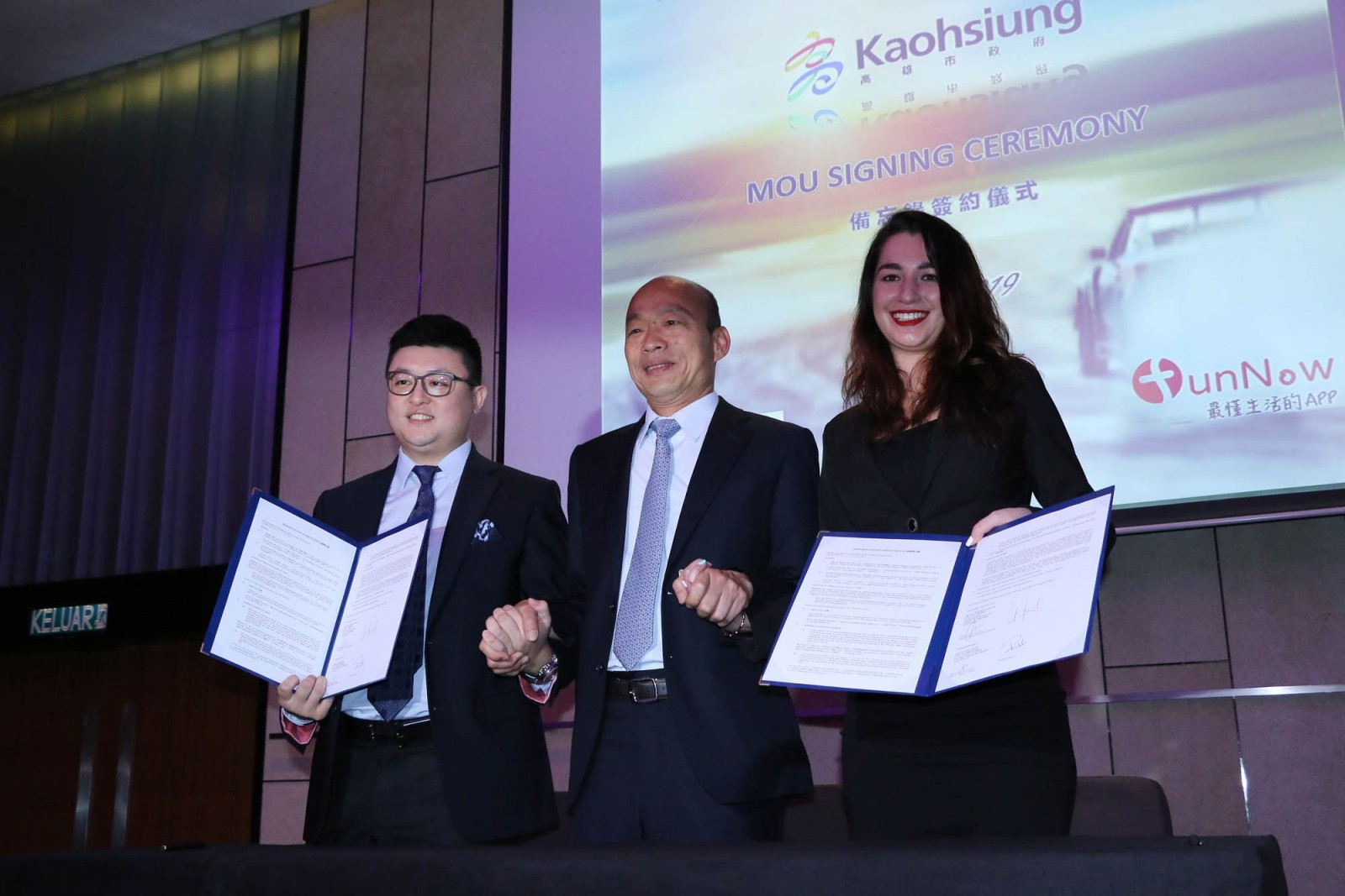 韓國瑜訪馬來西亞行程滿檔,2/25中午出席當地拿督丁重誠餐會,與僑胞、台商、當地媒體招呼寒暄,他於會中見證台灣新創公司FUNNOW SDN BHD與GRAND PRIX ASIA PTE. LTD公司簽署備忘錄,尋求於高雄舉辦超級房車賽事之可能,韓國瑜樂觀以待。