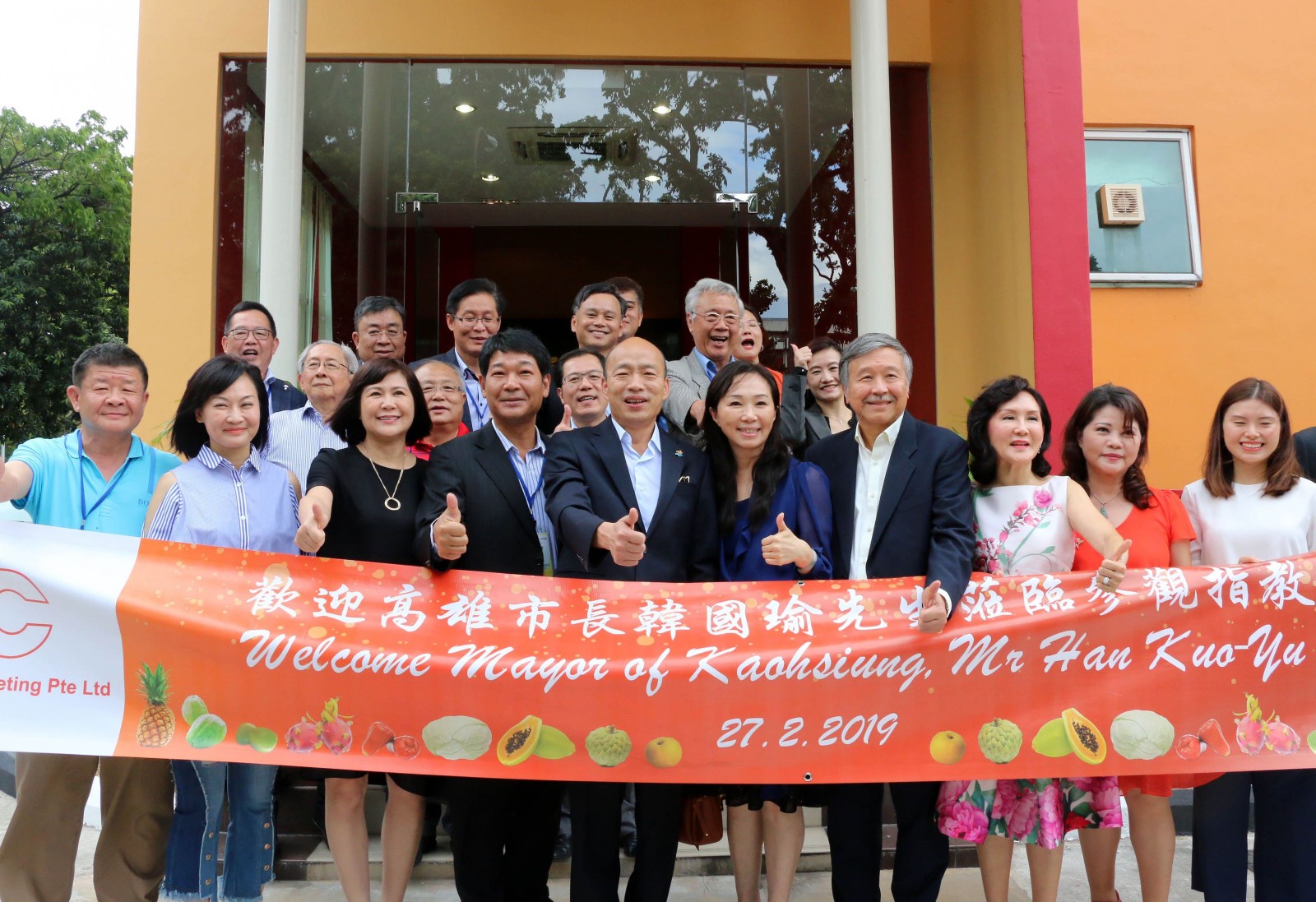 高雄積極洽談更多外銷通路,市長韓國瑜2/27晚見證與高雄農漁會與百美超市(prime supermarket),達成每年採購50萬新幣(約台幣1150萬元)的合作協議,合作期間3年,拓銷農產成績豐碩。稍早並參訪萬春商行,參觀該商行的冷凍冷藏供應系統,以及檢查、分裝、配送等環境流程,向董事長陳振賢爭取進口水產品