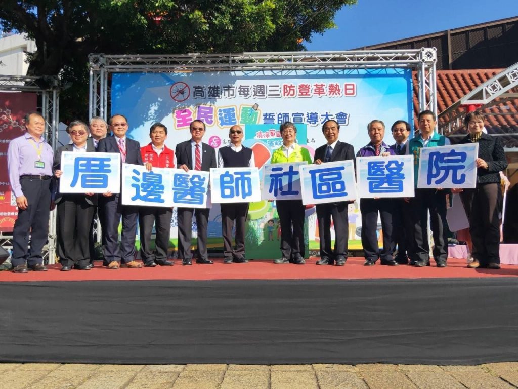 登革熱疫情防範首重落實社區環境整頓、孳生源清除,高雄市去年特別訂定每週三為「反登革熱日」,推動社區民眾一同參與消滅登革熱,2/12下午於三民區覆鼎金保安宮廣場,由市長韓國瑜與9家市立醫院及醫師、藥師、護理師護士等公會焦點團體代表、里鄰長及市府防疫團隊舉辦「防登革熱日」全民運動誓師宣導大會,共同宣誓與社區民眾齊心齊力投入登革熱社區防疫工作的決心。