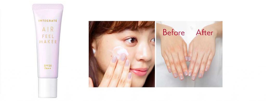 INTEGRATE紫色飾底乳光是名稱就看起來很厲害!以三效合一(彈力粉末、長效控油、不黏膩)超強空氣感美肌為訴求,據說具有高保濕水基底,讓臉璀水不再油膩膩,半透明的空氣粉末可以柔和遮蓋毛孔和解決膚色均的問題,終結蠟黃,幫妳換上一張偽素顏的透明肌。