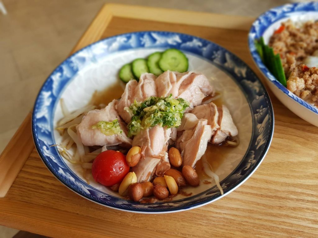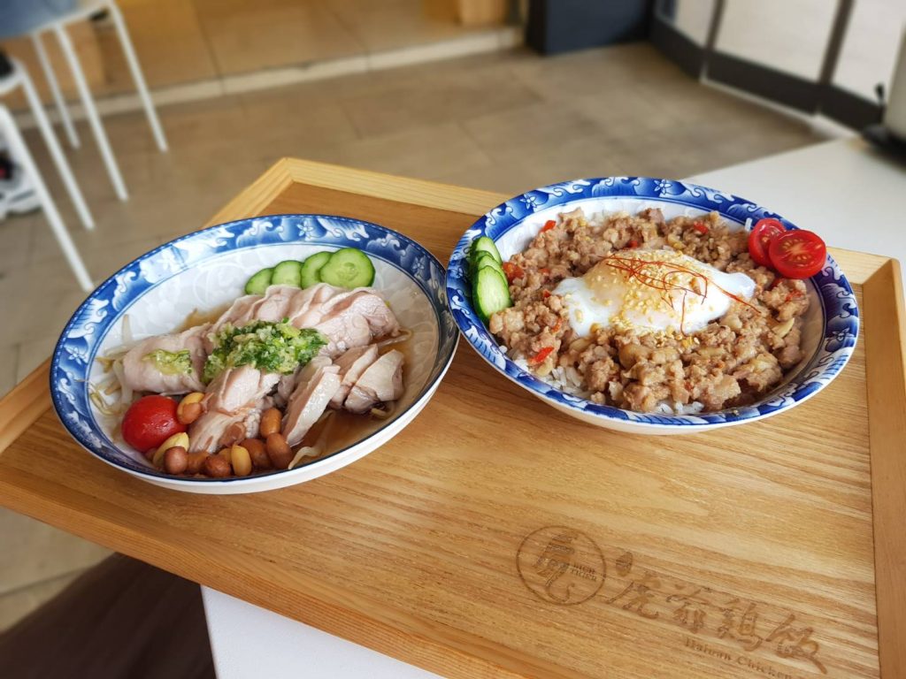 由於南部天氣炎熱,小編想吃點重口味的,所以點了同樣是虎爺雞飯菜單推薦餐點之一「打拋豬肉飯」,不過太餓了,又加點一份白斬雞腿切盤。(走針的身型就隨它去吧⋯⋯)