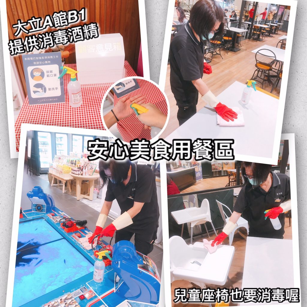 為了讓民眾外出用餐能夠安心享受美食,高雄大立百貨在A館地下一樓美食市集打造安心美食用餐區,架設「透明隔板區」,另外結合兩館內餐廳和知名外送平台Uber Eats以及Foodpanda合作推出「安心外送」服務,民眾也可利用大統集團APP線上點餐。