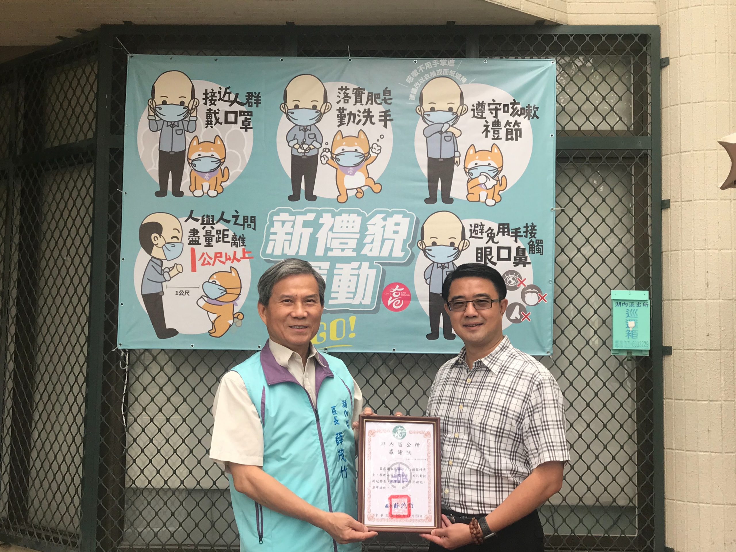 吳明樹說防疫需要整體社會協力合作,發揮同舟共濟之精神,因此他也身先士卒,領頭捐贈物資,為防疫盡一份心力。湖內區公所除了表達感謝外,也再次呼籲民眾應該多加注意個人衛生習慣,勤洗手、拱手不握手,一同做好防疫措施。