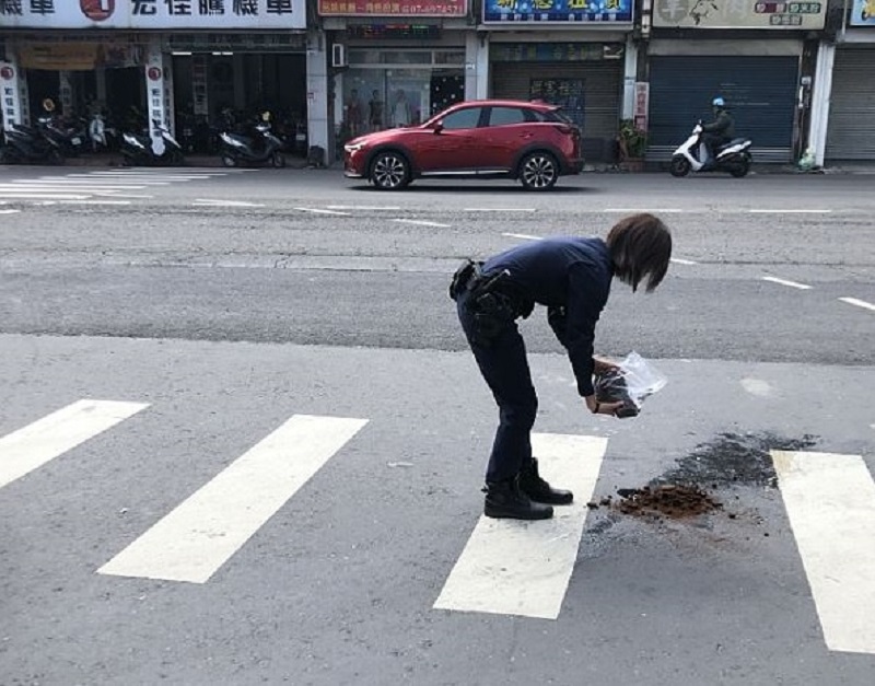 兩警因平時執勤時就熟悉附近生活圈,再加上可能對於咖啡渣的廢物運用也是略懂略懂,索幸前往鄰近的咖啡店拿了一些不再使用的咖啡渣,以廢物再利用的方式,將咖啡渣均勻灑在佈滿油漬的路面上,最後甚至不辭辛勞協助清潔隊員一起將路面的油污、咖啡渣快速清理,解除路況,讓往來車輛又能安全地行駛,民眾見狀也大呼,兩警真的親民又機靈。