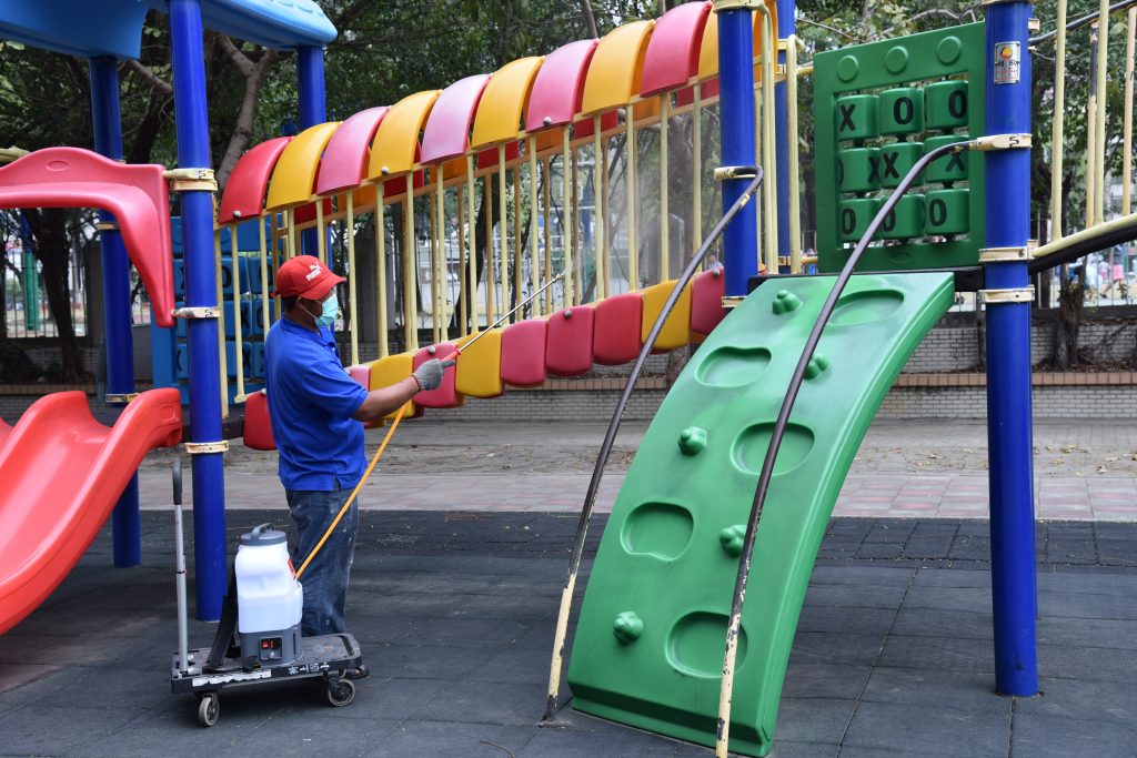 清明節連假結束,高雄市各校園都不敢輕忽,早在昨(4/5)、今(4/6)兩天進行全面性的消毒工作,除了上課落實量額溫、手部消毒外,高雄市教育局再度強調,為避免造成防疫破口,高市高中職以下校園全面暫停對外開放至5/3,呼籲民眾切勿再進入校園運動休憩,以免受罰。