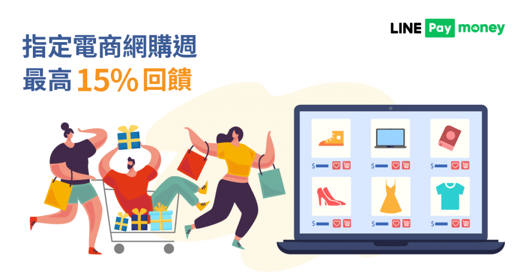 4/10推出首波「LINE Pay Money網購週」點數回饋活動,聯合三大網購平台(momo購物網、PChome、東森購物等指定網購平台),只要使用LINE Pay Money付款,單筆滿1000元享點數6%回饋,單筆滿2500元再享9%回饋,最高合計15%點數回饋,活動期間內用高額回饋讓你聰明消費。