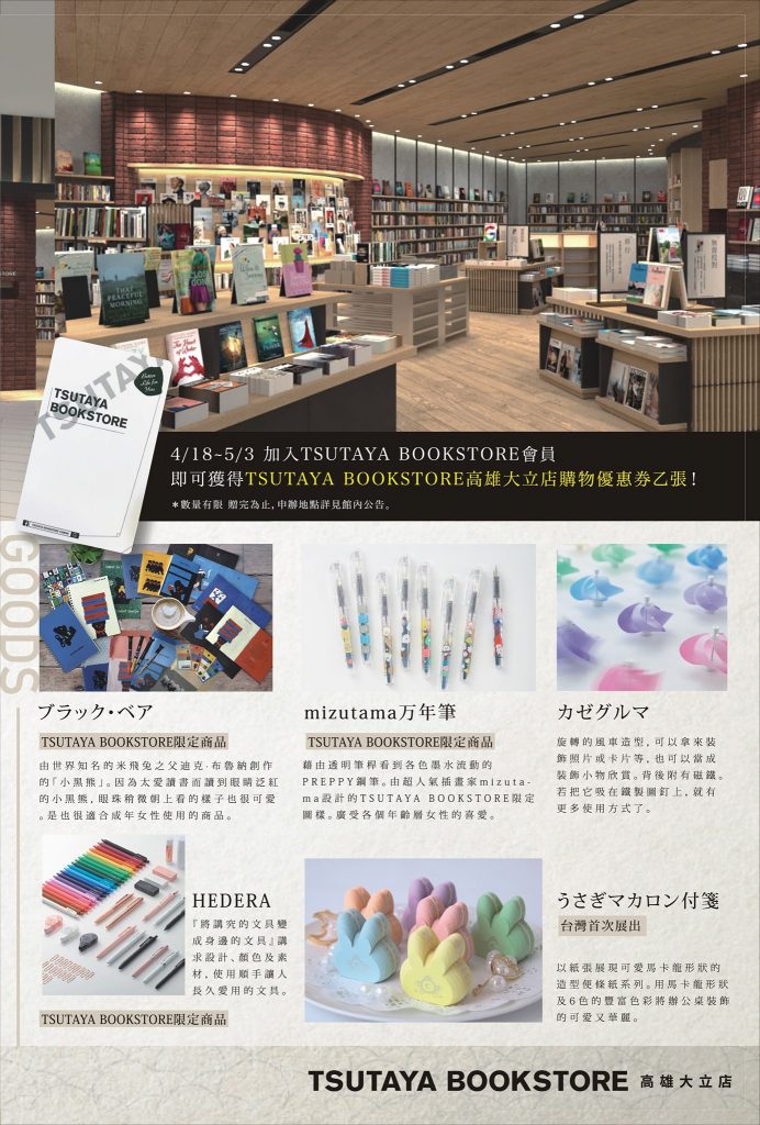 繼駁二藝術特區、MLD台鋁、悅城廣場等多元生活場域,豐富了高雄文化與書香底蘊,未來再加上TSUTAYA BOOKSTORE,港都藝文風貌將更加精彩耀眼。