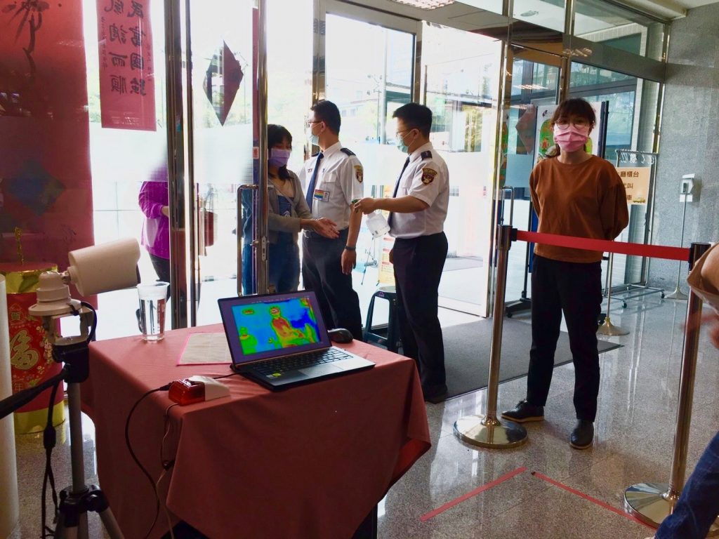 南服中心大樓1、2樓為勞保局高雄辦事處,3、4樓為外交部南部辦事處,5、6樓為移民署高雄市第一服務站,每日進洽公民眾約有3000人,中心1樓設置2張桌子分流人潮,也方便洽公民眾登記,同時設置紅外線體溫感測儀,再加上宣導入內戴口罩、消毒雙手,強化防護,實名制措施可望確保民眾與執勤單位的健康,用心防疫不馬虎。