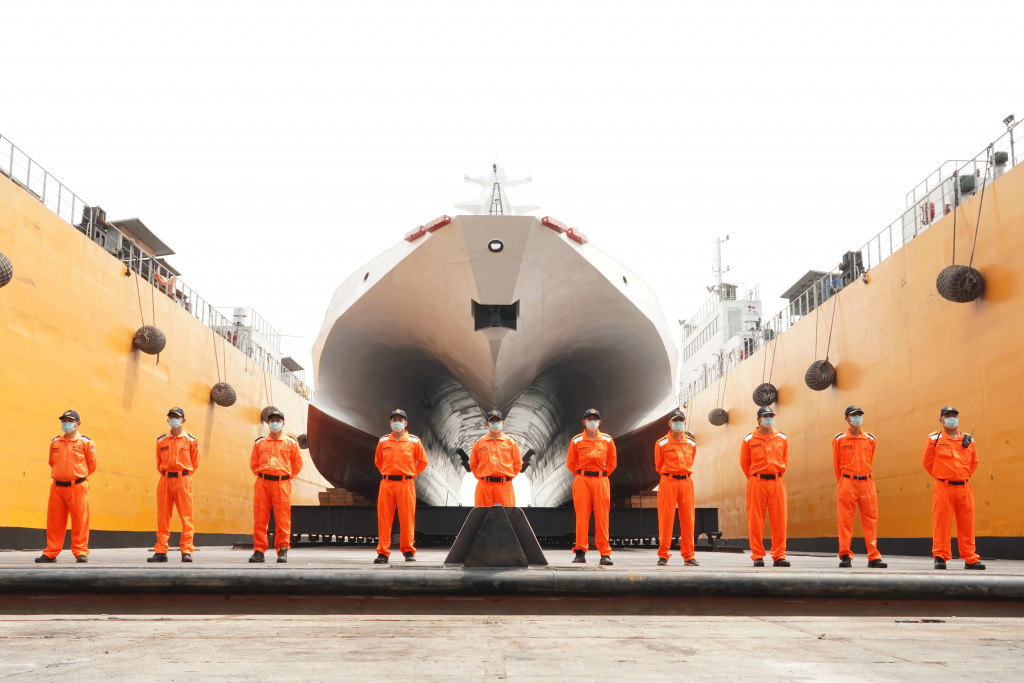 首艘600噸級巡防艦「安平艦」於今(27)日下水並提前至10月交船,上午海巡署艦隊分署在中信高鼎廠,舉行首艘600噸級巡防艦下水等聯合儀式,同時進行第3艘600噸級巡防艦開工及第3艘35噸級巡防艇交船,藉巡防艦下水儀式,為建案祈福,預祝一切順利平安。