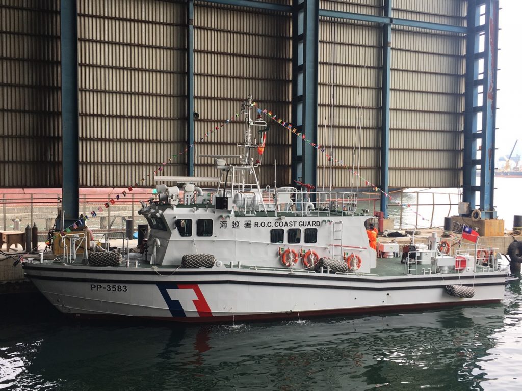新造35噸級巡防艇最高船速達45節,更具備水砲功能,射程可達60公尺,未來投入海上巡邏勤務,可提升巡邏密度與勤務強度,有效查緝走私偷渡,取締越界陸船,防堵非洲豬瘟及新冠肺炎從海上入侵。