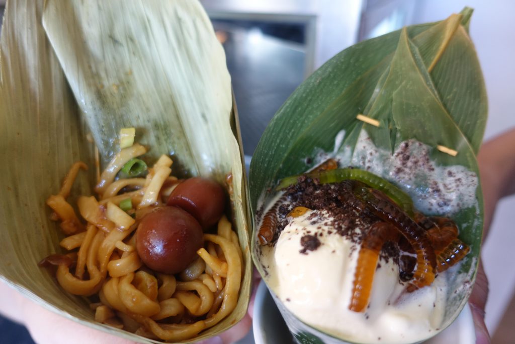 廚師2人紛紛表示,這些創作料理製作起來超「厚工」,為了傳遞提案學生曾郁方的理念,運用竹葉包裝,真實還原動物食物,也帶入環保概念減少包材浪費。其中「毛毛蟲冰宮」栩栩如生猶如真的毛毛蟲破土而出是不是超吸睛?! 中山大學化學系學生曾郁方說,團隊向翰品提案時,特別建議廚師利用意想不到的元素設計菜品,希望吸引年輕人也翻轉大家對「翰品」老品牌的印象。