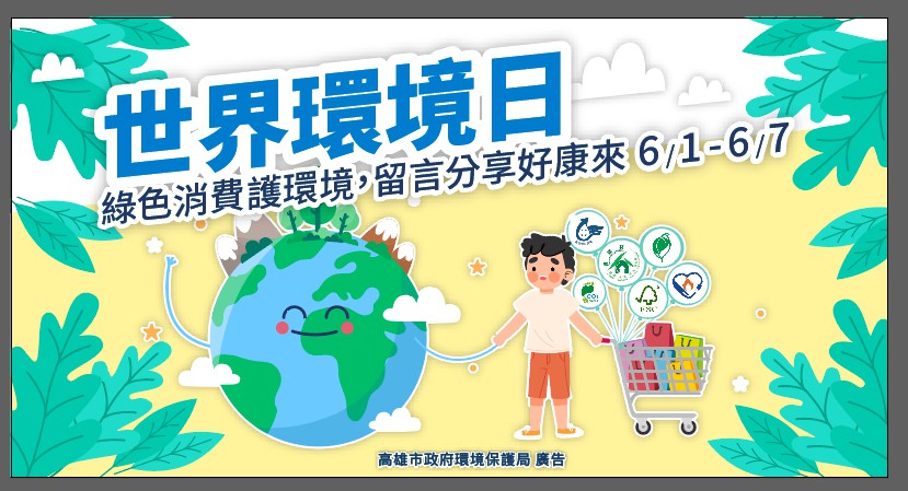 6/5是世界環境日,高市環保局響應今年世界環境日,6/1至6/7舉辦臉書綠色消費抽獎活動,只要到環保局臉書按照遊戲方式,就有機會抽中實用綠色商品,最大獎是空氣清淨機!